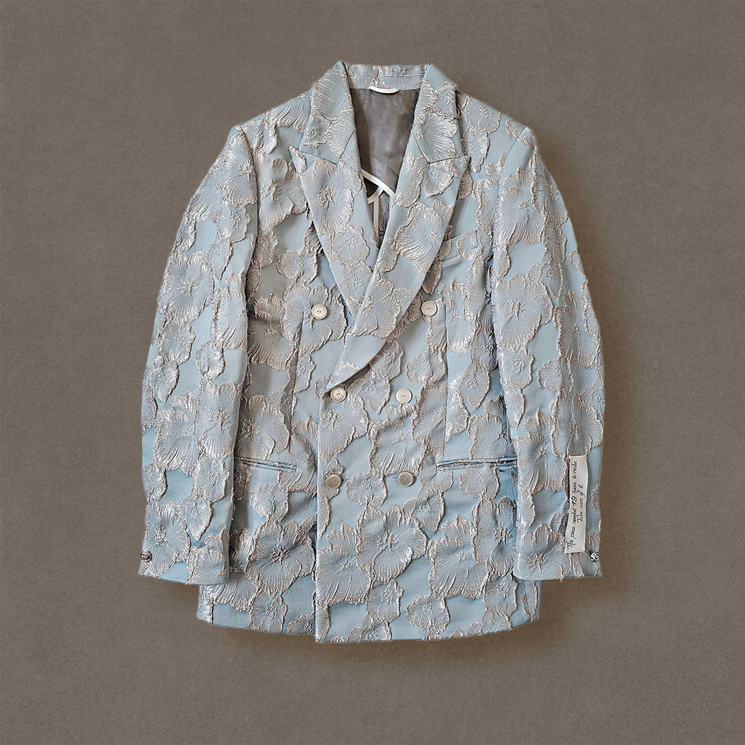 Blazer aus strukturiertem Cloqué-Gewebe in hellblau mit Gold-details
