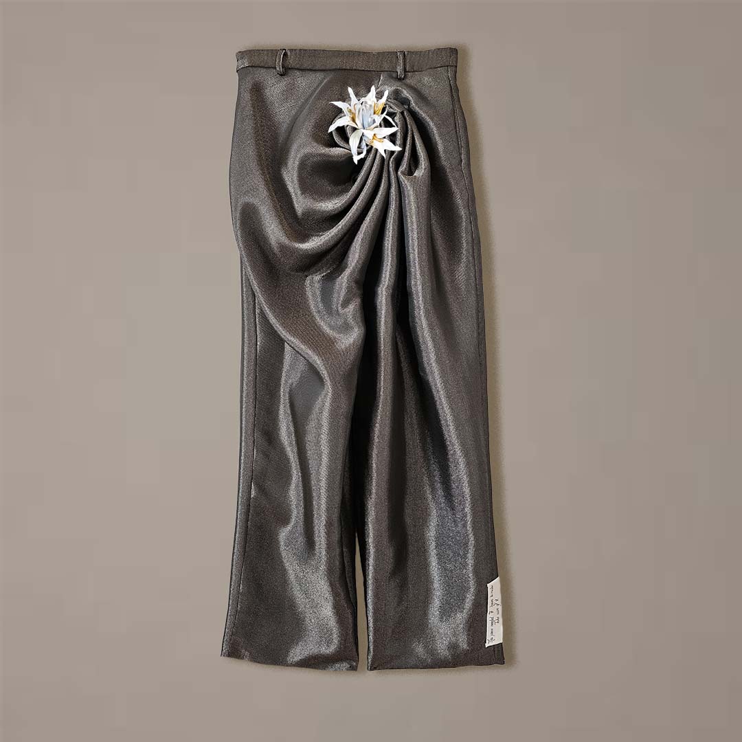 - Hose mit weitem Bein und spiralförmiger Drapierung