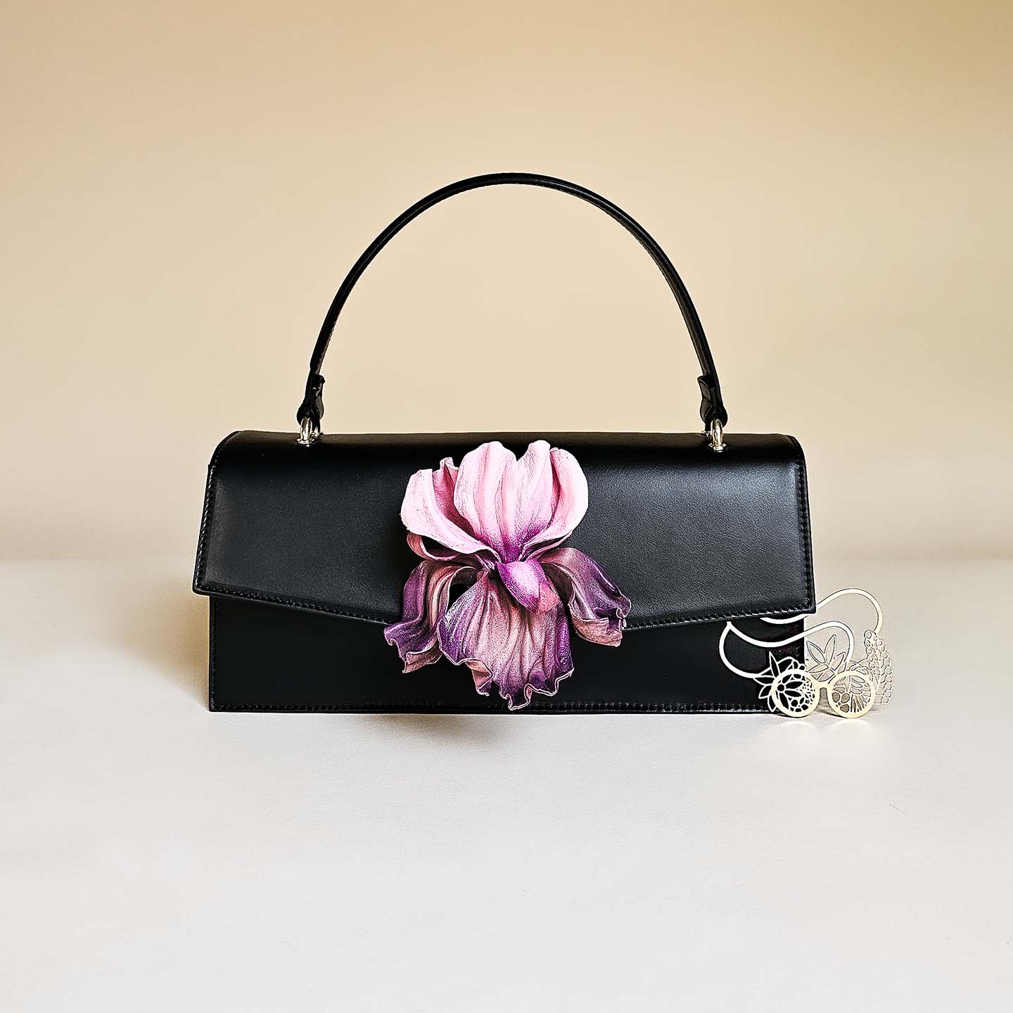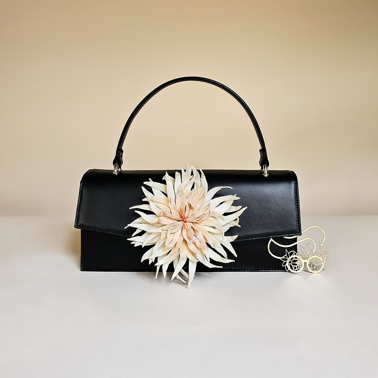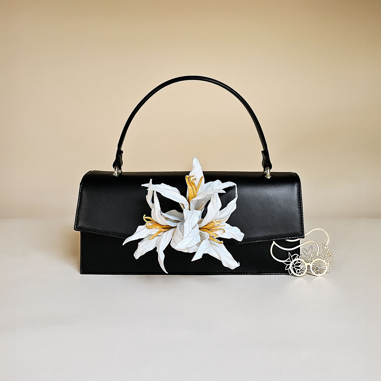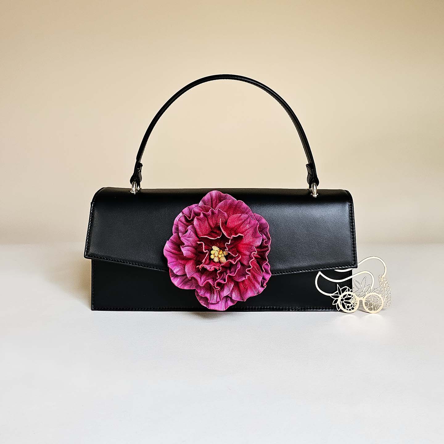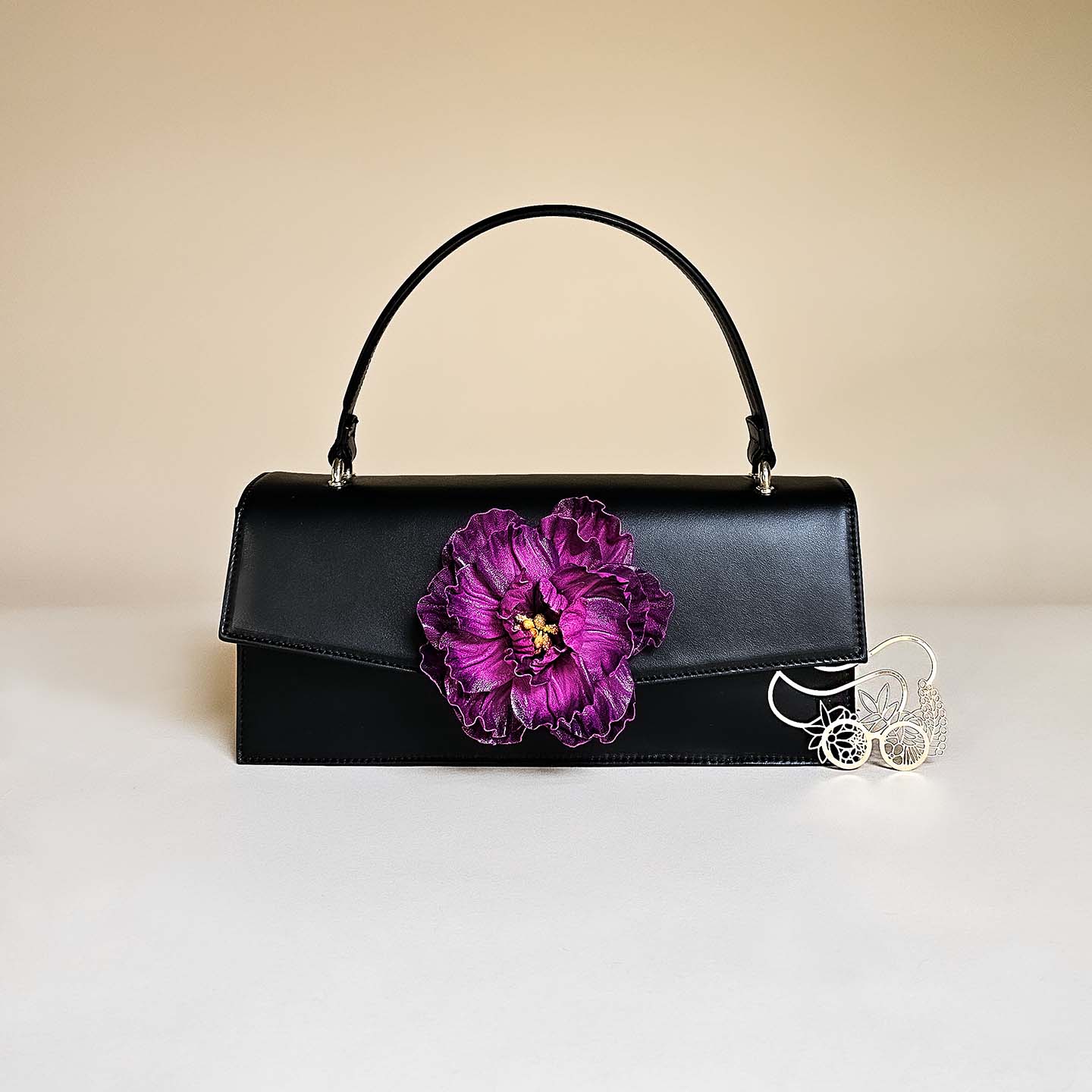 Gaia verkörpert den Inbegriff einer zeitlosen, elegant-klassischen Handtasche, die als lebenslange Begleiterin konzipiert ist. Ihre klare Form setzt stilvolle Akzente und bildet einen harmonischen Kontrast zu den kunstvoll geschwungenen Blumen.